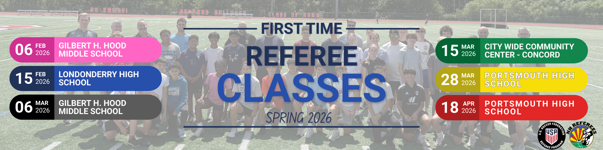 To be eligible to referee in 2026, every referee that held an active referee license in 2025 needs to complete the U.S. Soccer Recertification for their license level. NH completes all licensing requirements through the U.S. Soccer Learning Center. Login to your profile to complete your recertification to be eligible to referee in 2026.